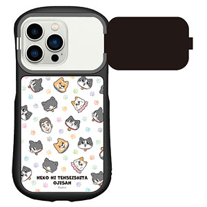 ねこに転生したおじさん iPhone15/15Pro/14/14Pro/13/13Pro/12/12Pro 対応ハイブリッドガラスケース 総柄